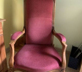 Vendons deux fauteuils Voltaire, refait à neuf, en velours grenat la carcasse est en chêne massif Prix 300 l?un 500€ les deux