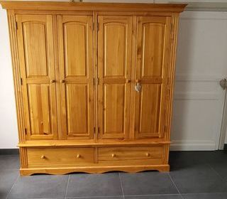 Armoire constituée de 2 penderies et 2tiroir de rangement entièrement démonter pour transport. Dimensions : H 2m, l1,90 m, profondeur 57 cm. A prendre sur place