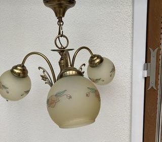 lustre en très bon état 3 branches 3 globes décorés en laiton