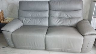 Canapé 3 places relax électrique cuir couleur gris clair très bon état plus fauteuil relax électrique cuir couleur gris clair très bon état possibilité de vendre séparément facture