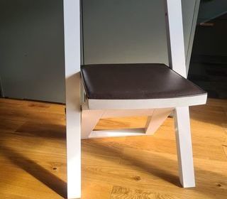 2 belle chaise pliante en laqué blanc avec le dessus en cuir marron plié 3 cm d'épaisseur largeur 46 cm hauteur 100 cm est ouverte 52 cm