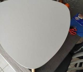 petite table en bois de '42 cm de haut en forme ovale 3 pieds