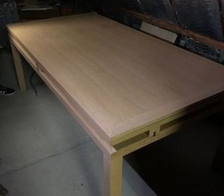 Table repas rectangulaire Longeur 200* largeur 100 hauteur 76 Avec 2 allonges de 48 cm chacune Chêne clairnmassif pour piétement et ceintures des plateaux Vendue pour cause d