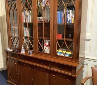 En très bon état 2 corps, 3 tiroirs dont un central avec écritoire A récupérer sur place paris 1 Hauteur 2,20m - longueur 1,85 - profondeur 0,48 et 0,38 (corps supérieur)