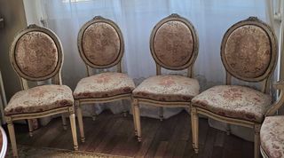 4 chaises médaillons, style Louis XV, en velours beige & rose, très belle patine. Etat vraiment impeccable.5