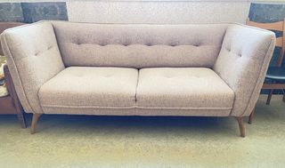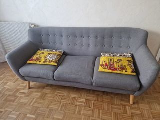Canapé tissu gris. Non convertible. L 196 cm. H 84 cm (pied 19 cm). Pied démontable. P 87 cm. Retrait sur place Paris 10.