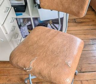 Lot de 4 chaises FLAMBO "Royale" M42 meubles de métier, à rajeunir, dossier et assise réglables. Enlèvement sur quartier Montparnasse. Notre famille les a utilisés pendant plus de