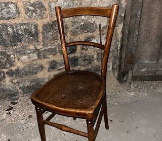 Trois chaises en bois identiques - type bistrot avec dessein sur assise