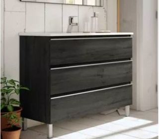 Le meuble de salle de bain sans miroir 3 tiroirs simple vasque PALMA - ebony (bois noir) - 70cm est composé d'un meuble sur pied et d'un plan vasque. Il existe en 5 coloris et 6 di