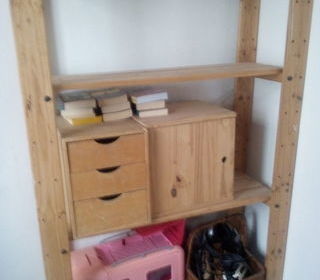 Etagères (sans les objets qui s'y trouvent sur la photo...) 3 niveaux modulables Bois, très bon état. Hauteur : 174 cm Largeur : 98 cm Profondeur : 34 cm