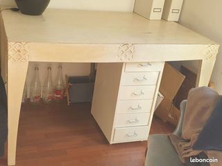 onjour, Je vends une table de marqueterie peinte en blanc. Dimensions: L.110 x l.70 x H. 85 A repeindre ou patiner. A venir retirer sur place à Paris 10ème.