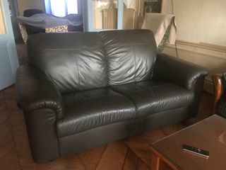 Je vends pour cause de double emploi un canapé deux places en cuir marron en bon état longueur: 175 cm Profondeur:90 cm Hauteur jusqu'à l'assise: 43 cm Hauteur totale: 90 cm a