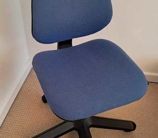 Je vends cette chaise de bureau en tissu bleu. - Type de produit : Chaise de bureau - Matériau : Tissu bleu - Fonctionnalités : Dossier ergonomique, réglable en hauteur Très bon ét