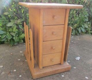 Porte-revue et bar , ou même chevet , très original avec ses 4 tiroirs d'un côté ( 11,5 x 10,5 x 8,5 cm ) et un range bouteille de l'autre ( 36 x 14 x 13 cm ) et de part et d'autre