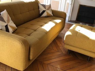 Canapé & Pouf en EXCELLENT ETAT, TRES PEU UTILISÉS Style élégant (pieds en bois, coutures soignées, lignes arrondies) qui s'intègre facilement dans tous les intérieurs modernes