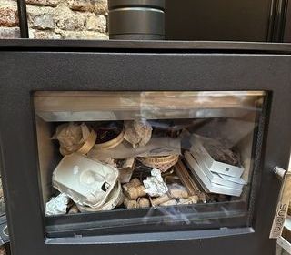 Poêle à bois neuf jamais utilisé avec accessoires, acheté à Leroy Merlin. Vitre standard cassée à changer avec vitrier ! À venir emporter sur place ! Attention transport lourd. Ven