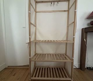Dressing en bois Dimensions : 40cm de profondeur 80cm de largeur 170cm de hauteur 3 étagères et un rail pour cintre + housse