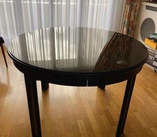 Je vous propose de ME FAIRE UNE OFFRE pour cette table ronde ( diamètre 120 cm / Hauteur 78 cm ) extensible ( rallonge intégrée de 50 cm ) en bois foncé style Wengé. Élégante et