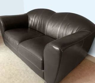 Canapé en véritable cuir de vachette, de la Maison Coloniale, de 2 places, fixe, très confortable, en très bon état et très facile à déplacer. Marron foncé. H 83 cm, L 186 cm,
