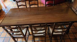 Table S A M chêne massif fabriqué par un artisan ébéniste 6 chaises ( chêne )+ 2 tabourets ( chêne ) Table long : 2,20 m larg :0,90 m Épaisseur : 5 cm Excel