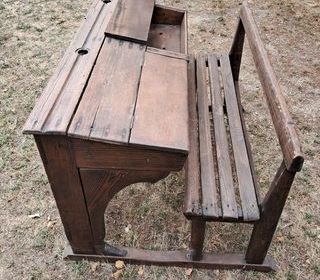 Pupitre ancien d'écolier 2 places avec des demies ouvertures de coffre , barre repose pieds ,barre de dossier A prendre sur place Faire offre