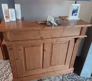 vend une ancienne longue étagère des années 1900, de 2,60 m de long et 0,43 m de hauteur totale., en merisier, fabrication artisanale. Pas d'envoi. A prendre à Racquinghem