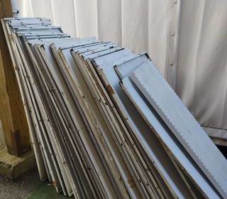 Etagères métallique à l'unité 35€ ou en lot de 5 pour 175€ étagères modulables blanche 2 mats + 2 fonds + 5 plateaux d'étagères par étagère largeur 1m40, hauteur 2m40