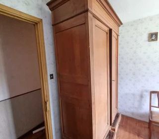 Armoire ancienne chêne 2 portes 2 tiroirs 2/3 penderie et 1/3 étagères hauteur 2,3m largeur1,3 et profondeur0, 55 Elle est démontée, et à prendre sur place N'hésitez pas à pren