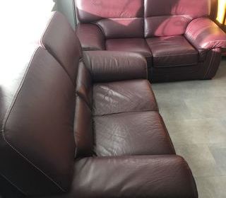 Deux Canapés en Cuir couleur violet bon état souple et elegant prix : 200 euros A prendre sur place A LAVAL 53000