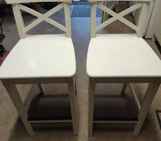hauteur assise de 64 cm, hauteur totale 92 cm, assise 39 cm sur 40 cm, bois peint en blanc, à retirer sur place