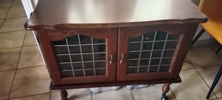 Joli petit meuble vitrine ancien sur roulettes avec 2 vitrines , un peu abîmé sur le dessus à gauche mais rien de grave il peut-être réparer