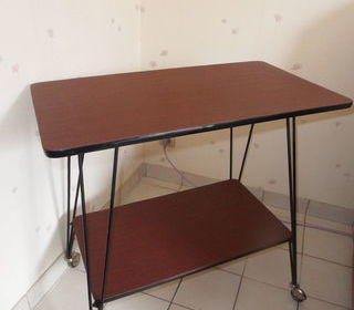 Lit 140 cm avec deux tables de chevet avec tiroir intégrées: 40 X 50 cm. Style contemporain (acheté il y a deux ans chez Conforama) : 140 euros