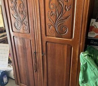 Armoire penderie en bois rouge. Dimensions (Cm) L 120 x P 60 x H 190. Ce matériel est visible et sera enlevé à Epinal (88 000)