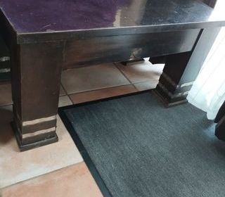 A récupérer à Pont Saint Martin (44) Table basse marron foncé, pieds carrés avec empiècement en métal. Mérite un ponçage et un coup de peinture/vernis. Haut 42,5 Larg 50 Long