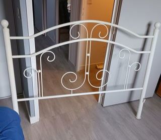 Joli lit style romantique pour fille. Solide en métal laqué blanc et dorée. Boules décoratives en porcelaine aux motifs fleuris. Fourni avec sommier à lattes qui n'a pas été mis su