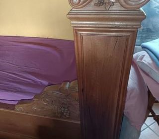 Vend un lit adulte 140 par 190 ,un sommier à lattes ainsi que deux tables de chevets ,en bon état .