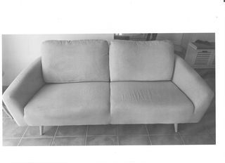 Canapé trois places en tissu gris. Longueur 1m90 Profondeur 0,65