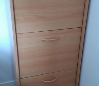 Noir et bois avec un petit tiroir ht 85 cm largeur 40 cm et longueur avec poignee 70 cm