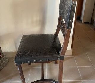 vend un lot de 6 chaises style Henri II en bois et cuir, en bon état.