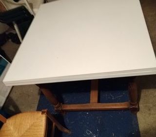 table ancienne ,pieds bois 86/90 cm dessus laqué 2 rallonges de 30 cm