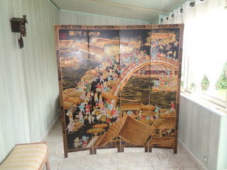 A VENDRE : PARAVENT HEVEA MASSIF ET BOULEAU LAQUE ¨POLYURETHANE MOTIF EN RELIEF - FINITION ASPEC LAQUE DE CHINE L = 172 - H = 183 - EP. = 3