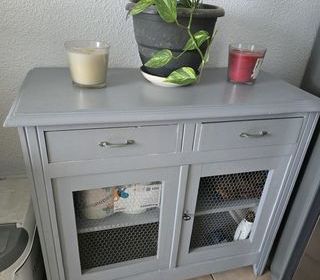 MEUBLE BAHUT DE RANGEMENT 2 PORTES ( ferment à clé grillage cage à poule ) 2 TIRROIRS DE COULEUR GRIS EXCELLENT ÉTAT DIM : L100 X l45 x H90