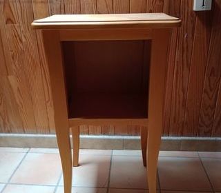 Petite table de chevet sans porte, bois chêne clair. Très Bon Etat. Hauteur : 70 cm Largeur : 42 cm Profondeur : 26 et 22 cm A venir chercher sur Perpignan contre paieme
