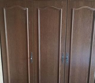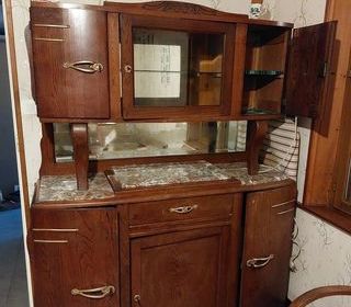 Ancien buffet 5 portes 1 porte vitrée 1 tiroir avec plaque de marbre dessus longueur 140 cm profondeur 43 cm hauteur 180 cm
