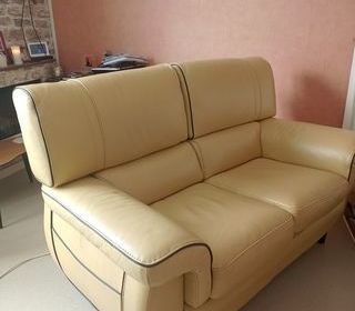 Ce canapé en cuir est de très bonne qualité pour un entretien régulier du cuir. Les photos sont récentes et correspondent à la réalité. Nous le vendons en raison de notre déménagem