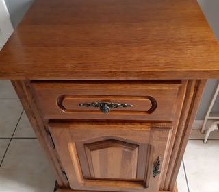 Je vends cette commode en chêne : dimension Longueur 1,10 m en bas ,le plateau de dessus 1,