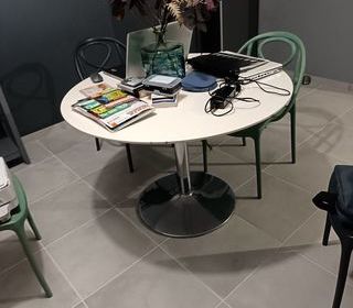 Table de salon en TECK très solide Dimensions : 1,10 m X 1,10 m / 1,10 m et 1,10 m X 1,60 m avec rallonge centrale. Hauteur 76,5 cm. Prix : 60 €