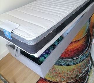 Lit coffre 1 personne 70 cm de large 190 long plus matelas état neuf haute qualité pouvant servir de canapé pour salon
