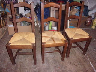 lot de 3 chaises en bois et paille bon état