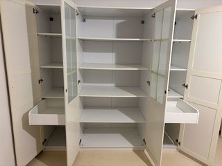 Armoire blanche d'occasion, un peu jauni mais en bon état générale, elle est composé de 3 modules.